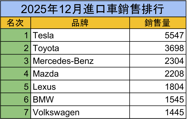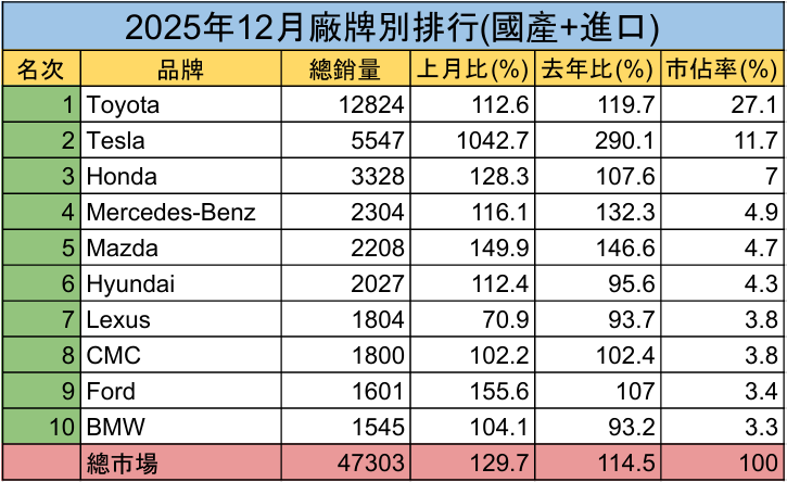 綜合來看,2025年12月車市回溫,並非全面性需求爆發,而是由「進口車年底衝量」與「電動車集中交付」共同驅動,國產車則持續扮演穩定基本盤角色。